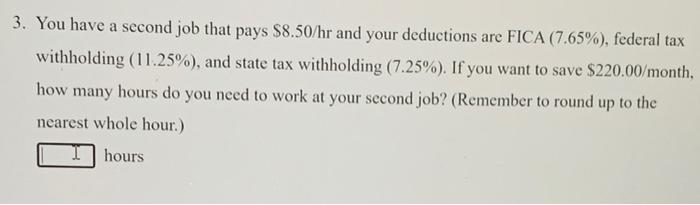 3 You Have A Second Job That Pays 8 50 Hr And Your Deductions Are Fica 7 65 Federal Tax Brainly Com